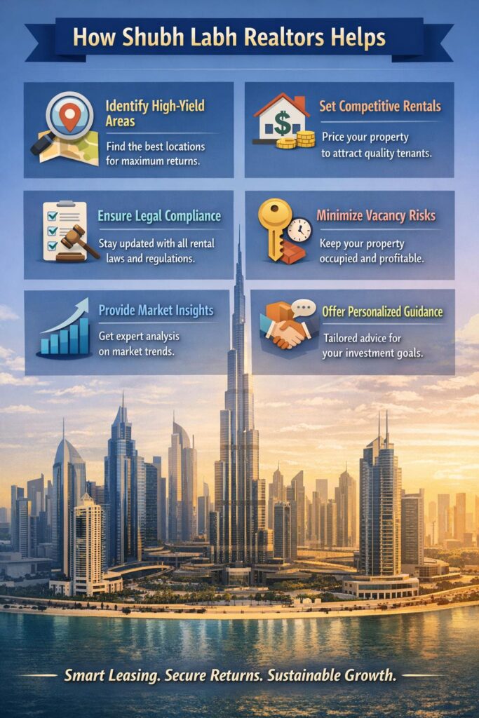At Shubh Labh Realtors, we specialize in Dubai property investment, offering trustworthy and growth-oriented opportunities for investors. By combining in-depth market insights with Vastu-compliant property principles, we create harmonious living and investment spaces that balance prosperity, functionality, and long-term value in Dubai’s real estate market.